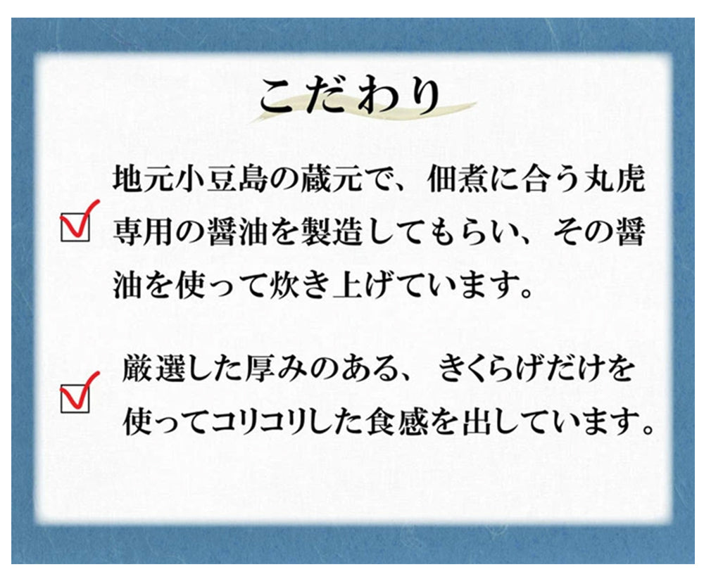 | 製造者 | 丸虎食品工業株式会社 (香川県小豆郡小豆島町古江甲81) |